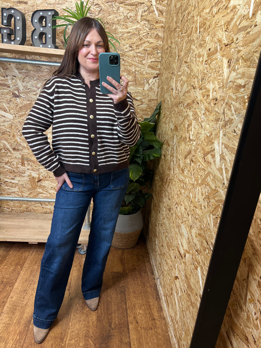 Stripe Gold Button Cardigan
