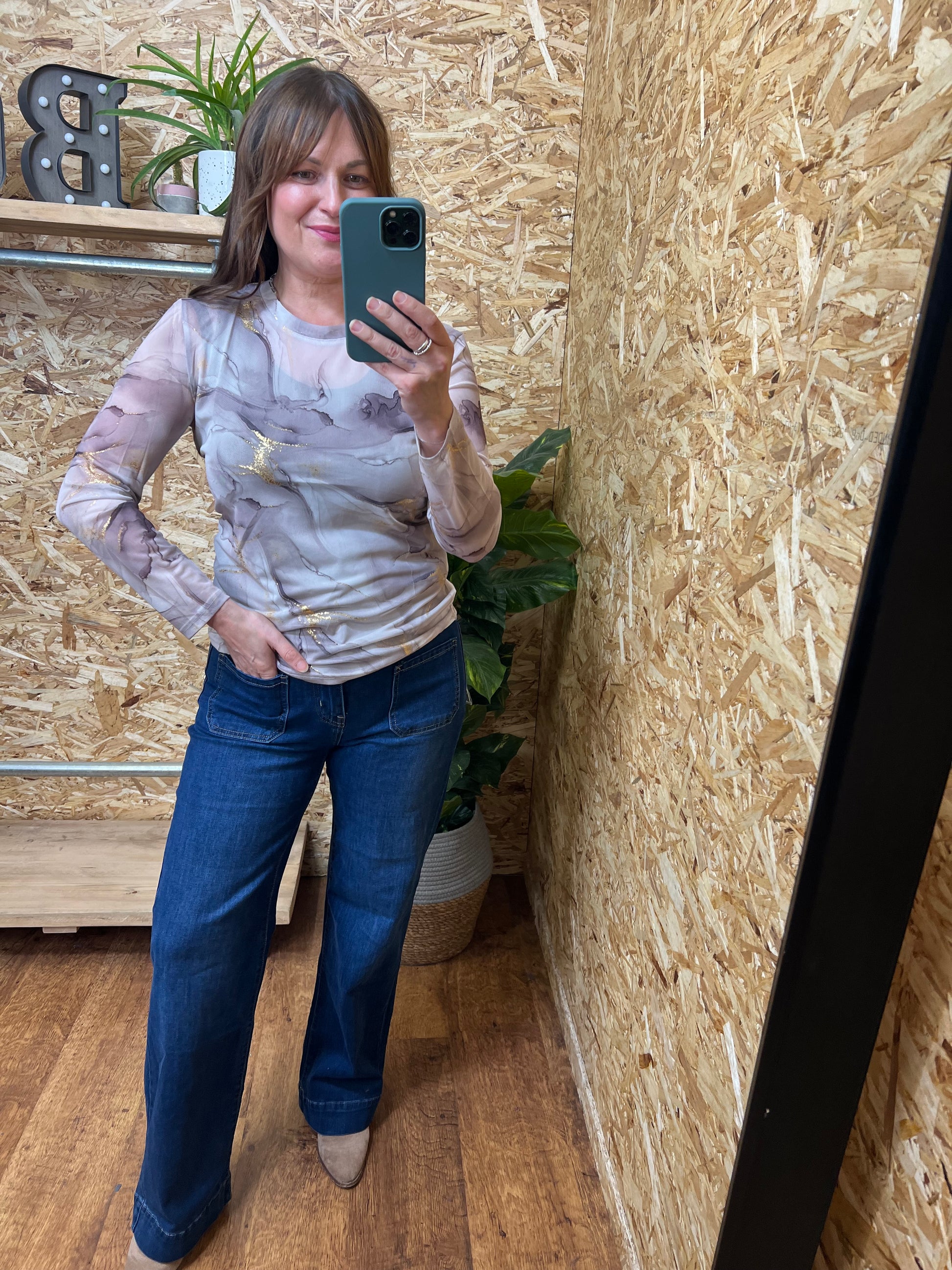 Gold Marble Mesh Top